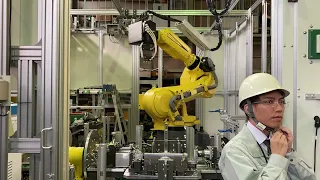 車載用部品試作ラインのロボットによる溶接作業において、監督者と作業者が装着しているヘルメットのあご紐に取り付けたヘルメット着用センサーからの信号をポカヨケ用受信機TW-800R-EXLを介してロボットに接続することで、「作業者がヘルメットを正しく着用していない場合、ロボットが自動停止する」及び「監督者が不安全と判定した場合、ヘルメットのあご紐を外してロボットを非常停止させる」仕組みを実現しました。